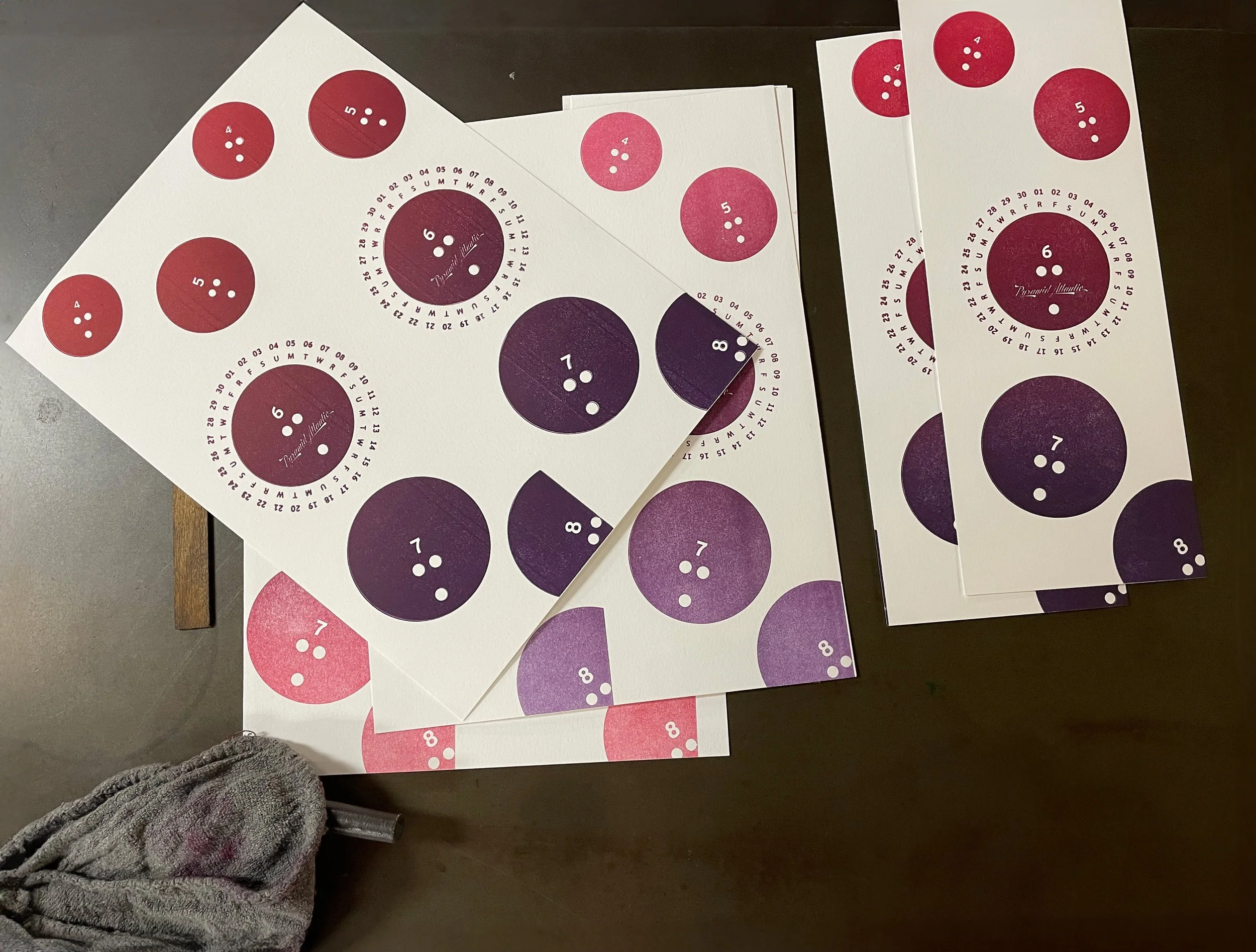 June 2023 design featured alongside the designs from previous Pyramid Atlantic letterpress calendars