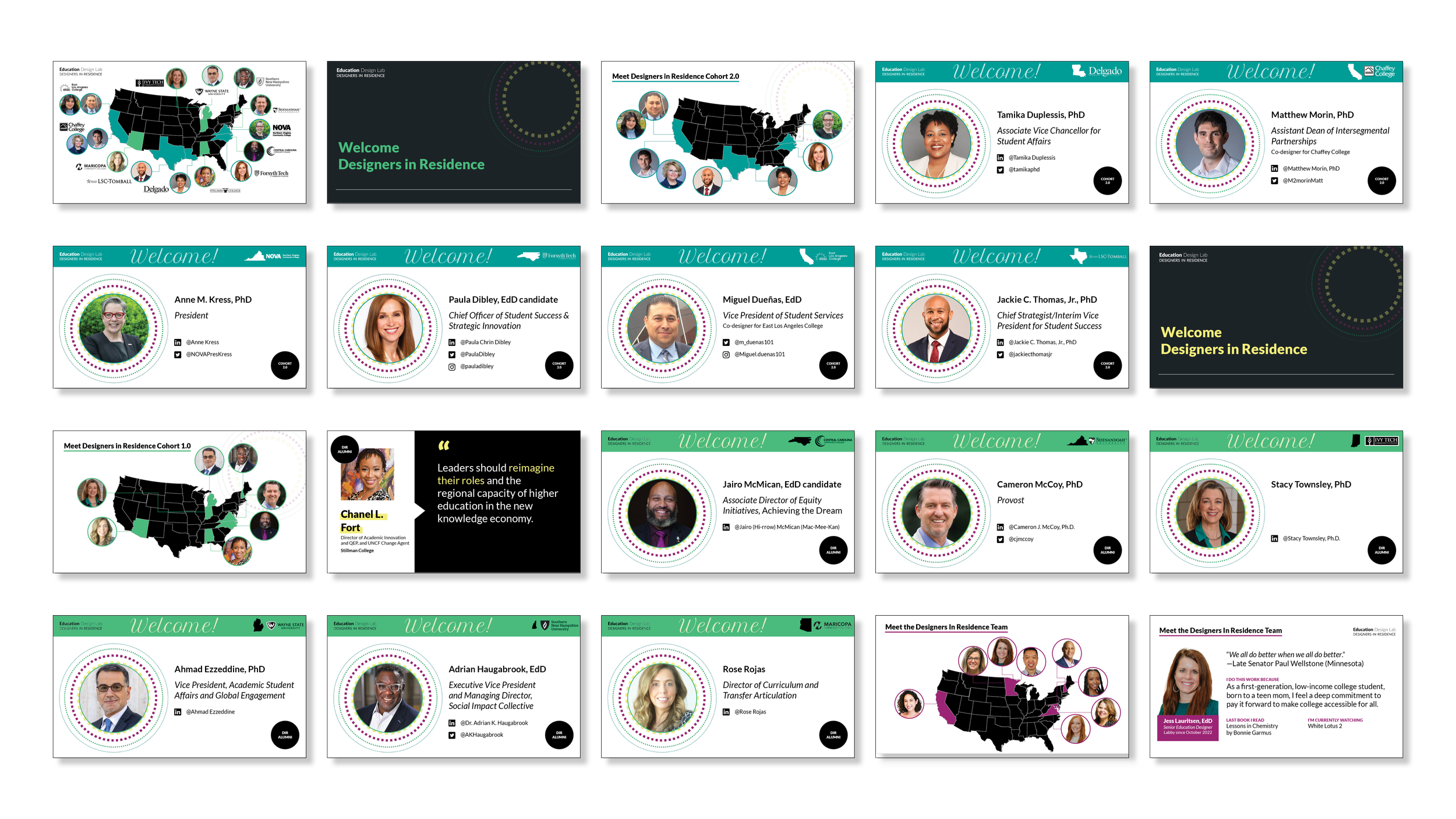 The use of the halo graphic was brought back for the announcement of the Designers in Residence Cohort 2 members, and in the reception slidedeck and welcoming packets for the in-person kick-off in Washington DC.