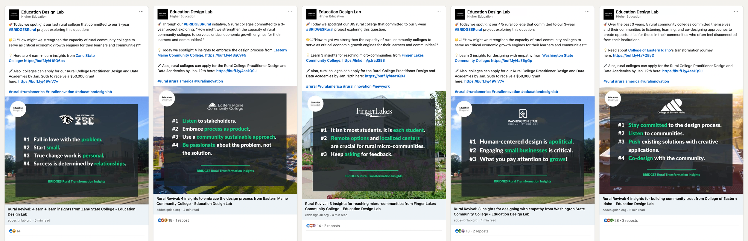 To recruit applications to BRIDGES Rural 2.0, my Communications Director proposed a blog series and social media campaign, spotlighting each of the 5 colleges in BRIDGES Rural 1.0.