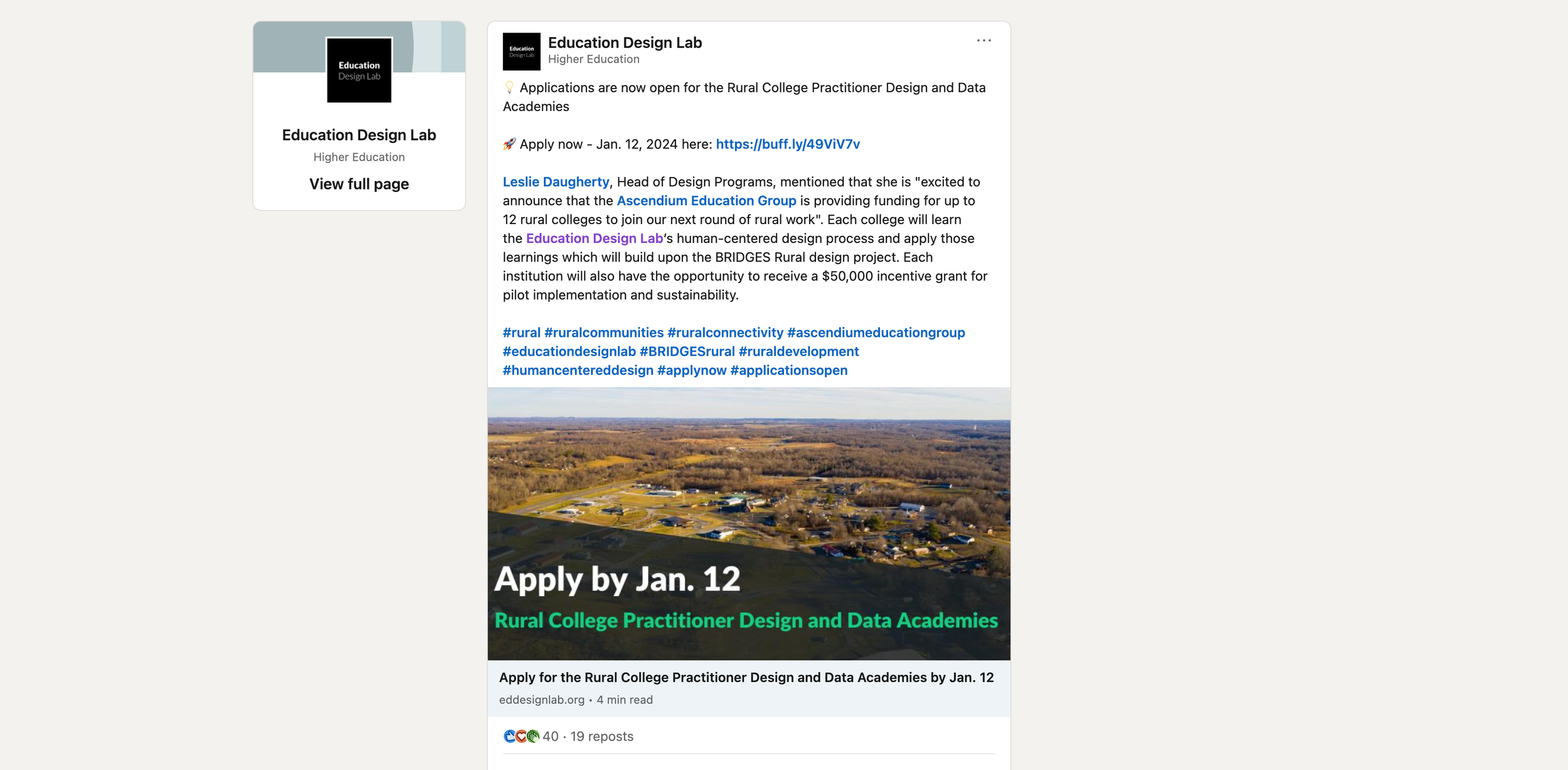 Due to unforeseen circumstances, public release of “Rural Revival” was delayed a few times after production of the publication was complete, but when we were ready to launch, the BRIDGES rural team at Education Design Lab had just been awarded a grant renewal by the Ascendium Education Group.